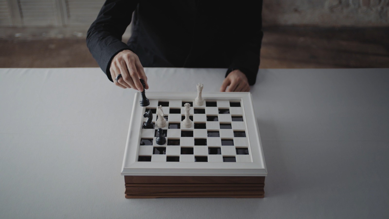 Птахи, які залишаються удома, перетворюються на шахи. Шахівниця рухається в такт космічній ракеті, котра запускає у космос послання людства. Жінка розкладається на квадрати й молекули. Люди і мости, звірі і небо – все переплелось, розтануло і залишило свій божественний слід на землі.
